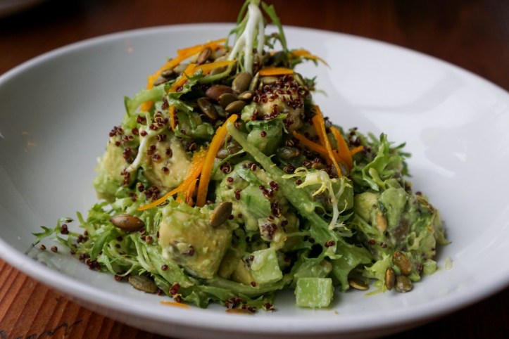 Chunky Avocado Frisée, crispy quinoa, shallot, basil, cucumber, pepitas, champagne vinaigrette