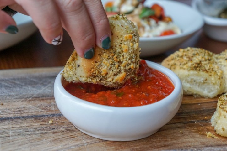 Cheesy Bread with marinara – Hand Model: @annie_eatsfood