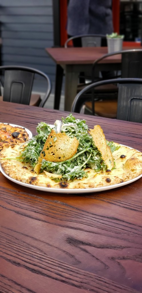 The Homage to Frankie’s features Italian sausage, which I love! It also has pepperoni cups, pickled peppers, red onions, and mushrooms. The Caesar has jalapeno-lemon parmesan vin, garlic croutons, and boquerones (cured anchovies). It was a refreshing addition to the pizzas, which I couldn’t stop eating!