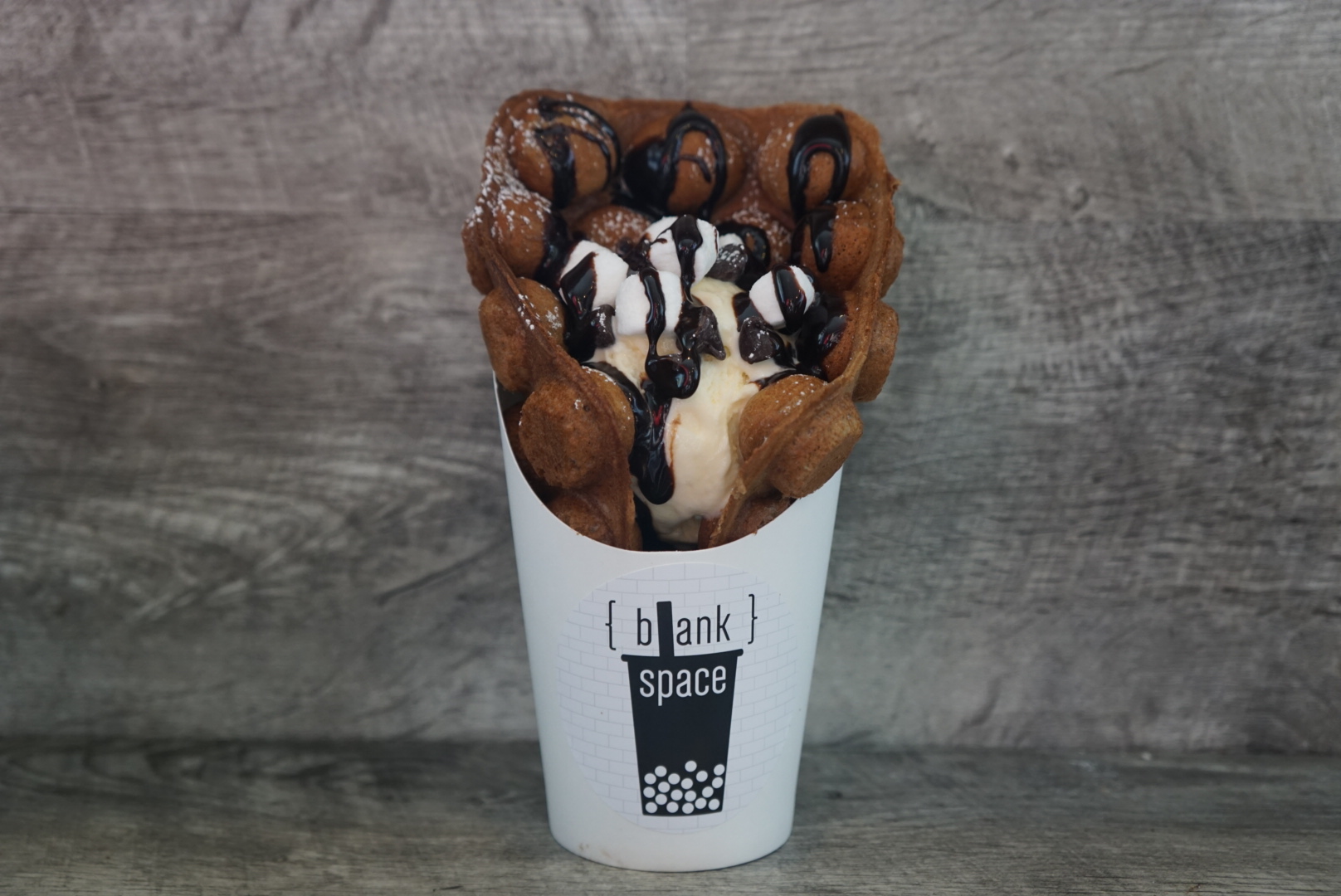 I love bubble waffles and Blank Space offers many options. With “I’m Fancy” you choose your bubble waffle flavor, ice cream, and up to three toppings. I got a chocolate waffle with vanilla ice cream, topped with chocolate syrup, chocolate chips, and marshmallows. I like being able to choose different flavors of waffle. It adds another layer of flavor to the dessert.