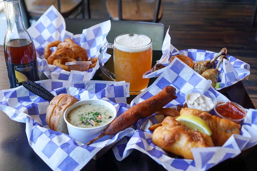 On the menu, you’ll find Tankard & Tun favorites like three different kinds of fish & chips, chowder, and fried oysters. There are Walk-Up Window exclusives like chicken drums, corn dogs, and fried favorites. We tried quite a bit of the menu during our visit.