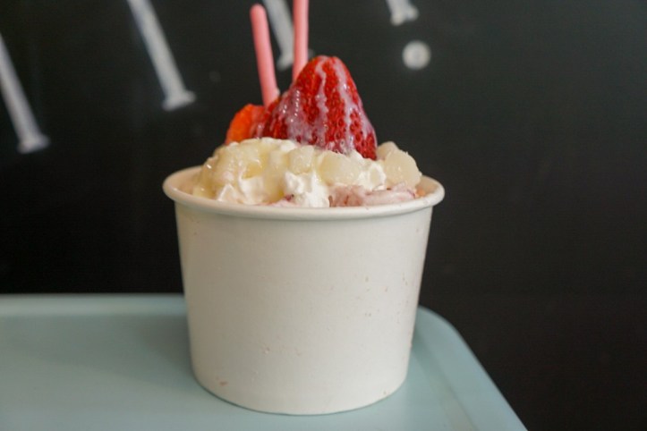 Banana Split: vanilla, banana, chocolate flakes, strawberry