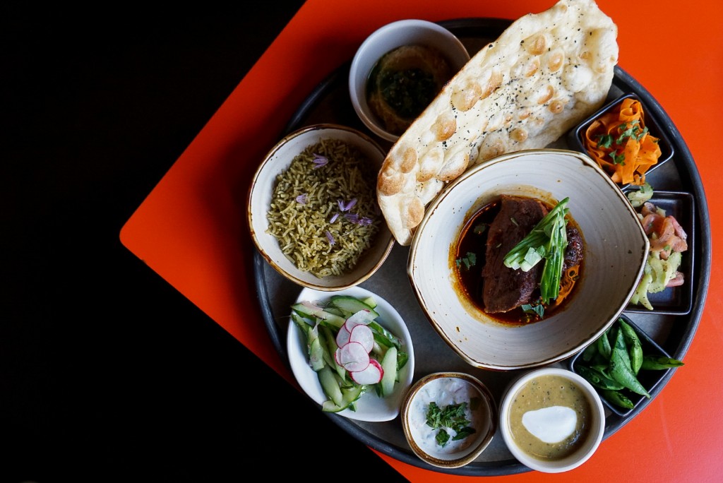 Thali Tuesday is composed of 10 dishes intended as a main course for one but easily shareable. We chose Doubanjiang Braised Pork Shoulder with Pickled Cucumber, and Thai Basil. The meal came with apple raita, smoked eggplant soup with coconut yogurt, snap peas with nettles and mint, cucumber, fennel, red onion, and caraway salad, mashed chickpeas with parsley and preserved lemon, carrot ribbons with clove and lime, green garlic basmati rice, pickled rhubarb, celery, and lovage, nigella naan. Thali is such an exploration! Each portion can stand on its own but had a theme to it. As I ate, I didn’t know which dish was called what but I chose to savor the experience. Everything was delicious!