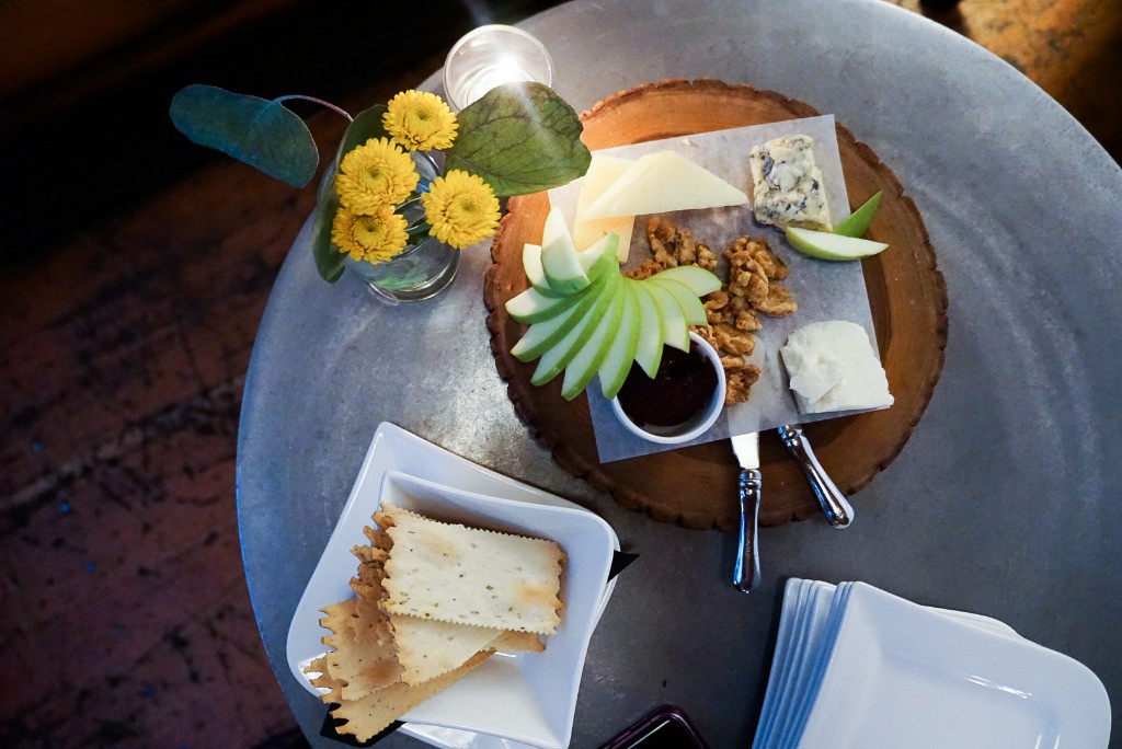 We gathered in a small corner for drinks and snacks. I had a lovely glass of cider as we chatted about our evening. The area was cozy with well-worn, comfortable furniture. It was nice to catch up with friends after a long day. We have a lovely plate of cheese, nuts, and fruit to snack on while we waited for everyone to arrive.