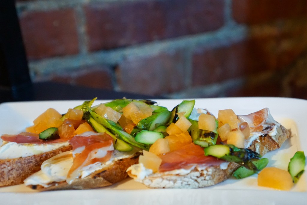 Wow! I’ll never look at melons the same way again! Prosciutto, grilled asparagus, diced melon, and chevre served on a baguette. This was fresh and the saltiness of the prosciutto was expertly contrasted by the fresh, mildly sweet melon. This was one of my favorite dishes of the night.