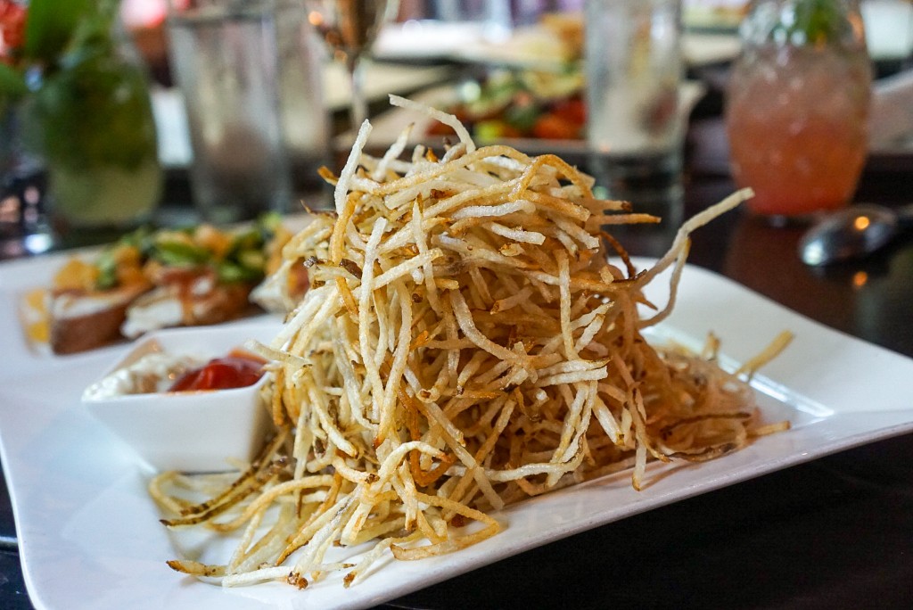 We had a choice of shoestring frites or thick cut fries with truffle salt. We chose the shoestring frites. They were delicious and I joked about how there was no elegant way to eat them. No matter. They tasted so good!