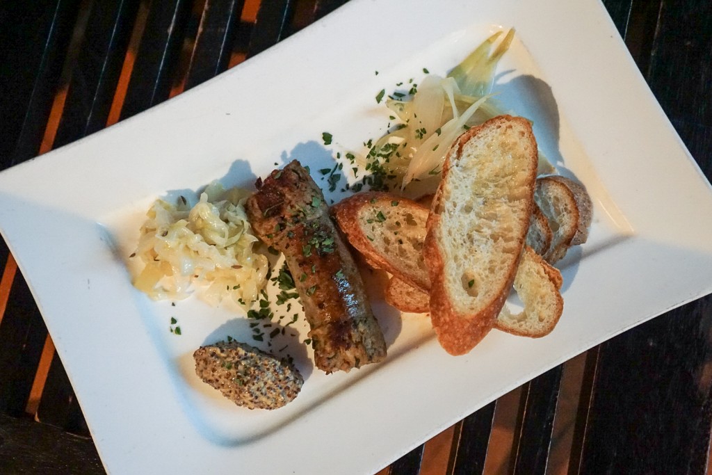 This dish was an absolute hit! The oven roasted Cajun pork and rice sausage was served with pickled salad onions, coarse mustard, cabbage salad, and crostini. The sausage was so soft and it spread on the crostini easily. It was so flavorful!