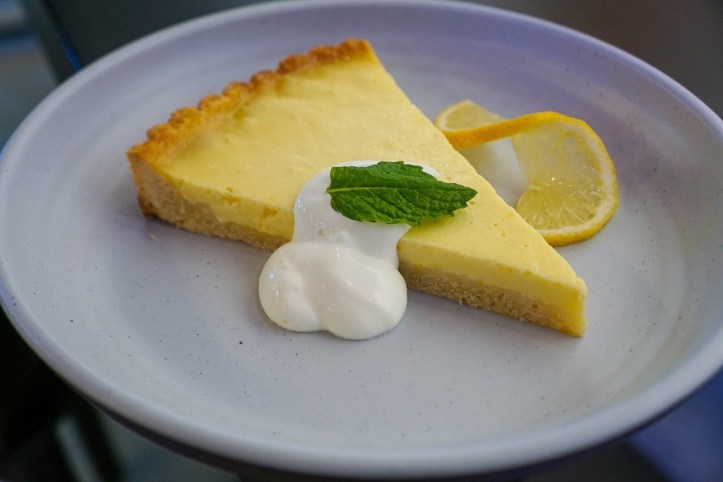 I’m a dessert fan and am often grumpy when I don’t get it. Local Tide served up a lovely lemon pie. The shortbread crust was a bit softer than expected but it went very well with the tart, sweet lemon filling. A bit of cream was served with it and a sprig of mint. It was well done and satisfying.