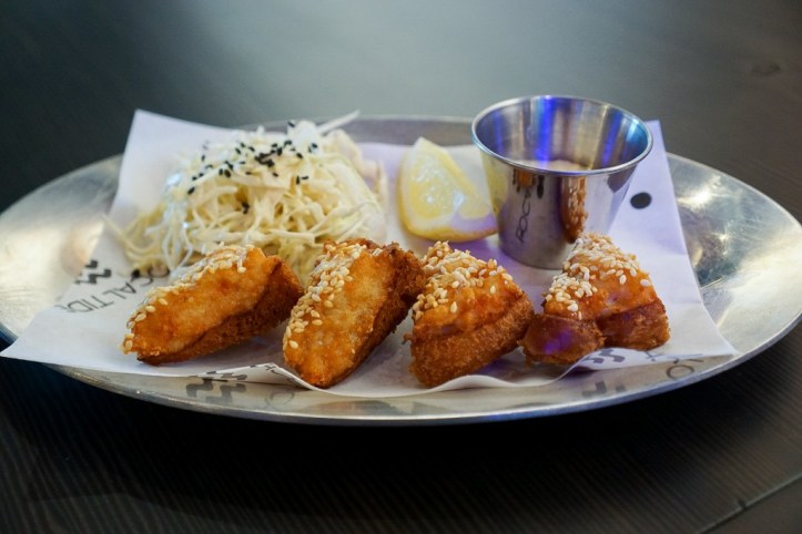 Next up was the Rockfish Banh Mi with yelloweye rockfish, pork, cucumber, carrot, daikon, purple cabbage, fresno chili, herbs Maggie’s house kewpie, on a baguette. I eat a lot of banh mi and I’m always excited to try more! The rockfish had good texture and it’s definitely worth a try for something a little familiar but different.