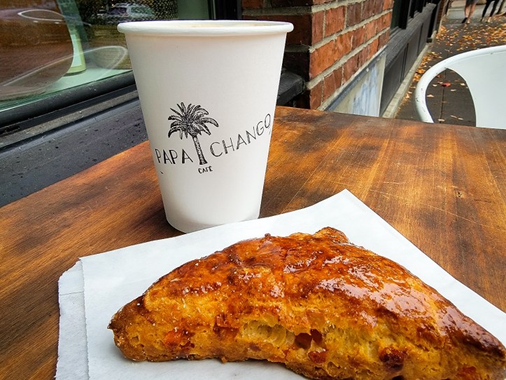 I arrived too late in the day to try the Pastelito de Guayaba y Queso (guava and cream cheese pastry) or the Pastelito de Carne (ground beef, olive and raisin pastry) so I’ll have to return soon. I tried the Scones de Papaya with guava butter. I eat a lot of scones and am often disappointed. This one had a bit of moisture so it wasn’t super crumbly. The bits of papaya were sweet and chewy. The guava butter added a bit of sweetness and a lovely glaze to the scone. It had a slight crunch when I bit into it and was much more enjoyable to eat than the average scone. I can’t wait to try other bites on the menu!